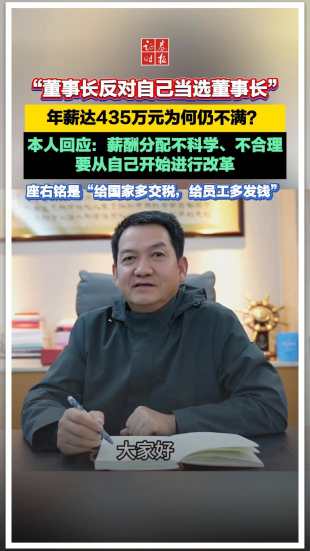 “董事長反對自己當選董事長”,年薪達435萬元為何仍不滿?本人回應:薪酬分配不科學、不合理,要從自己開始進行改革