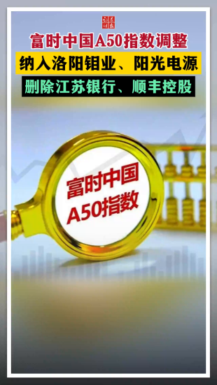 富時中國A50指數調整 納入洛陽鉬業、陽光電源 刪除江蘇銀行、順豐控股